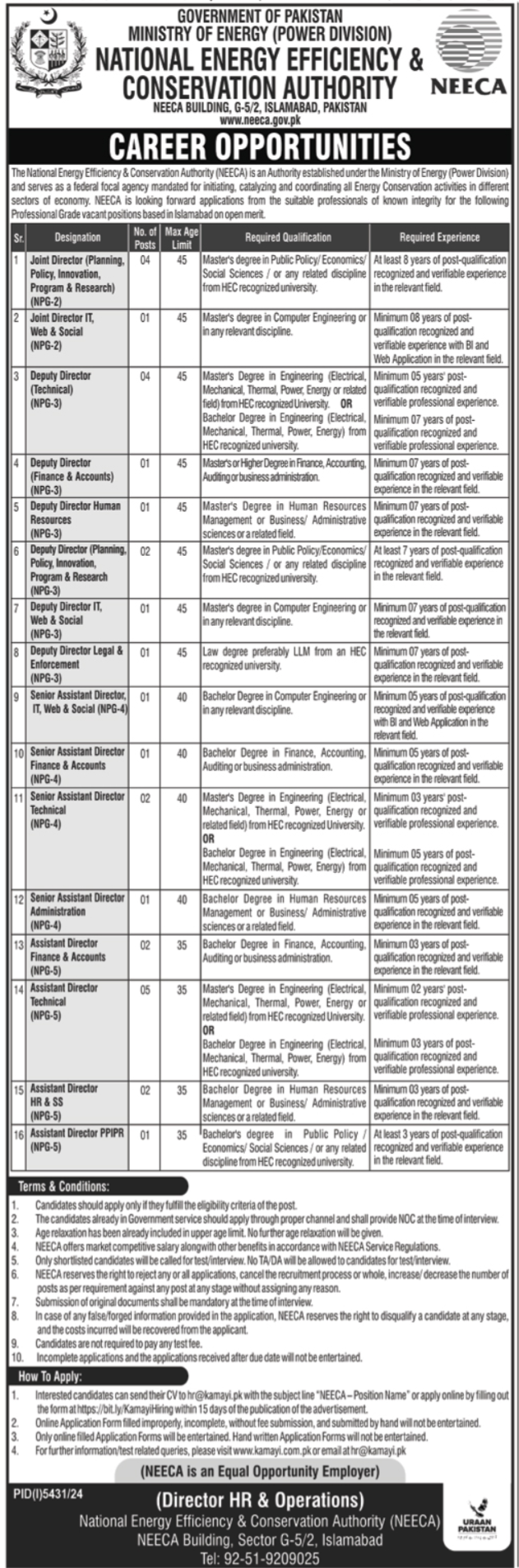 The Ministry of Energy (NEECA) is a government department responsible for developing and implementing policies related to energy conservation and efficiency in Pakistan. To achieve its goals, NEECA often hires talented and dedicated individuals to fill vacant positions. In this article, we will explore the vacant positions available at the Ministry of Energy (NEECA), including the job description, eligibility criteria, application procedure, and benefits.